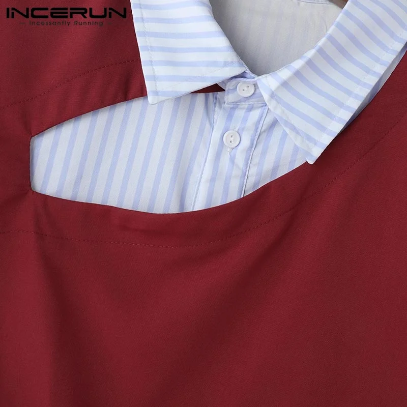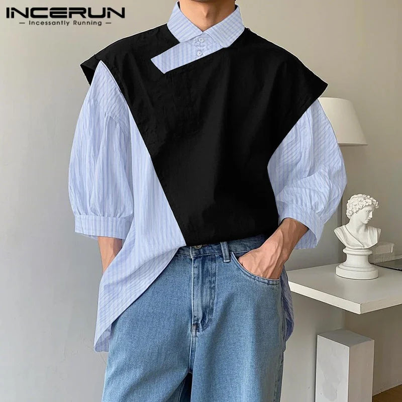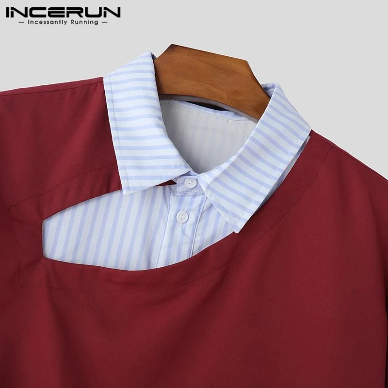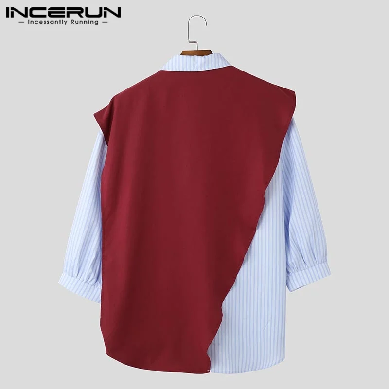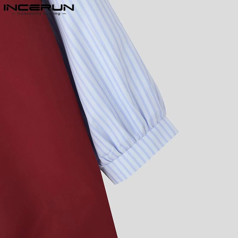 Summer Spring Men Shirts Fashion Patchwork INCERUN Striped Shirt Men's Clothing Streetwear Lapel Tops Oversize S-5XL