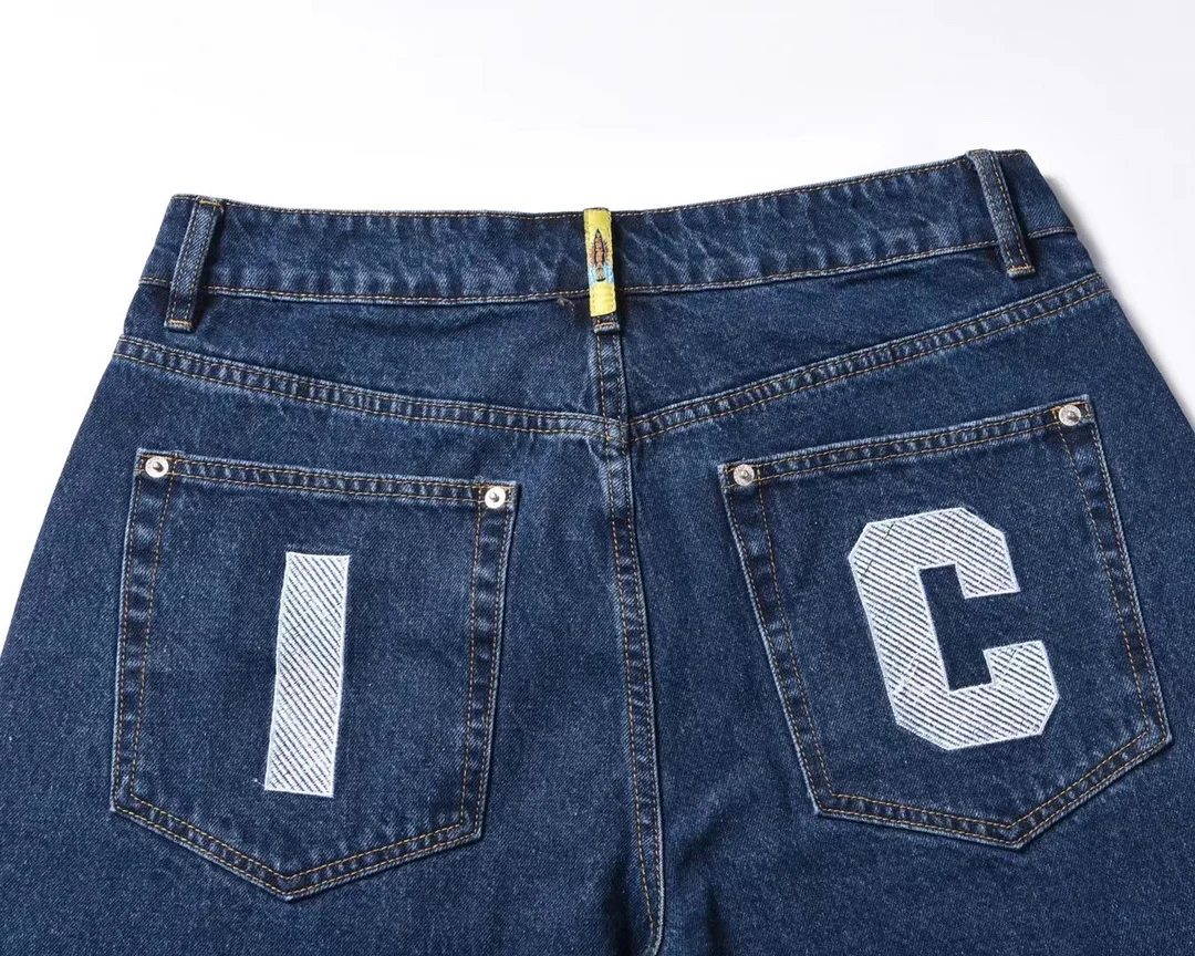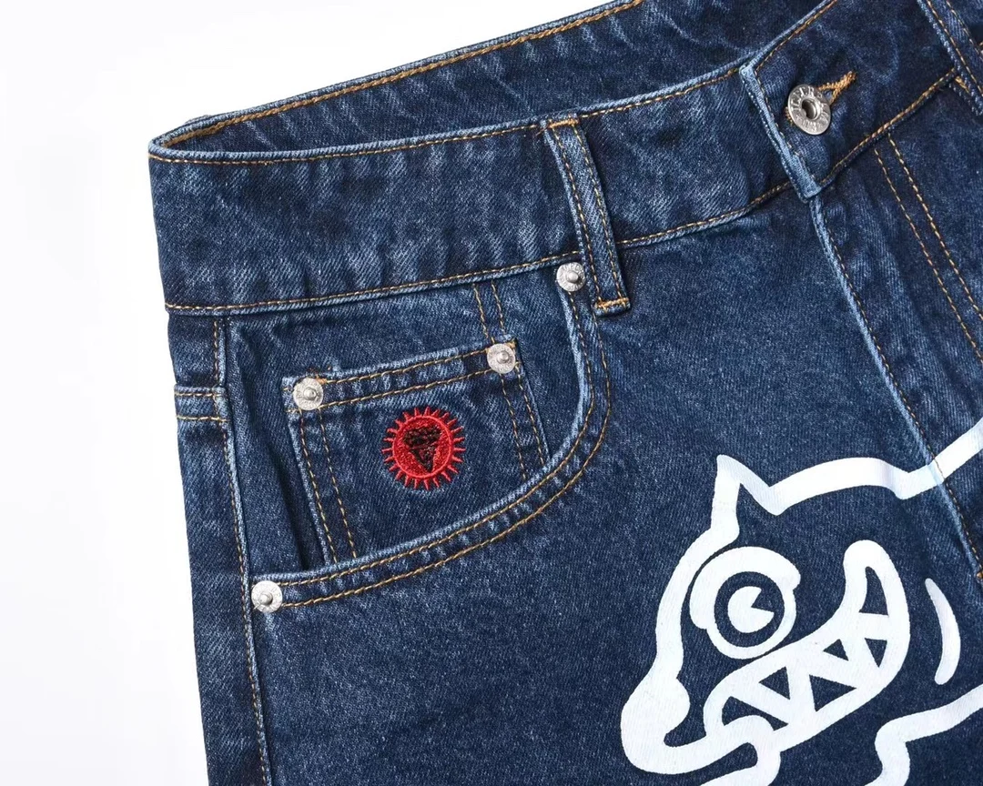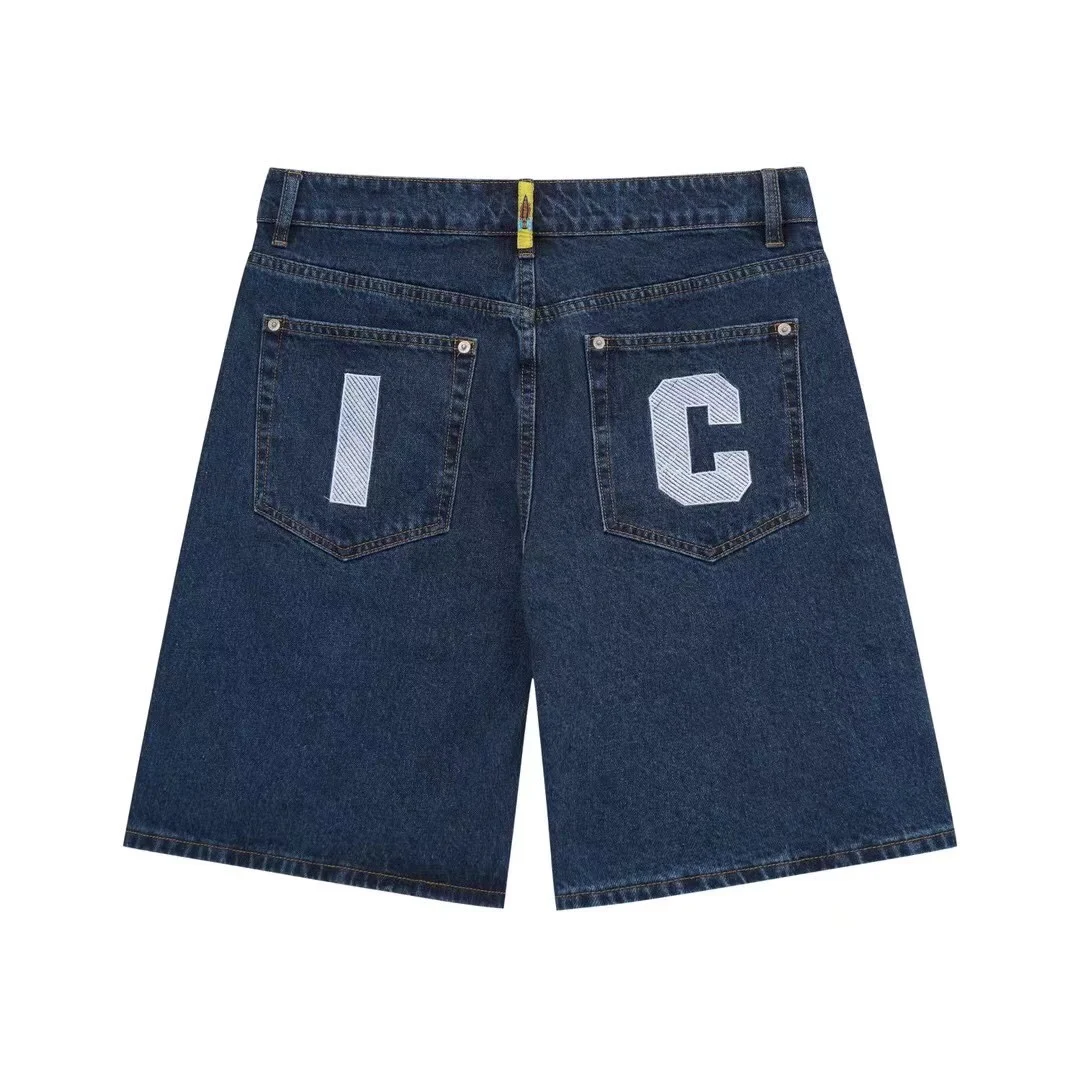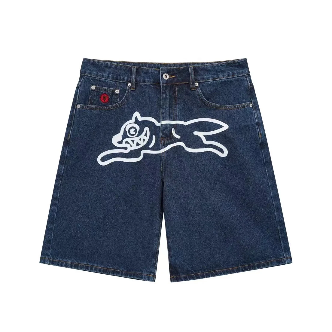 Top quality Icecream Jeans Men Trendy Elastic Edged Middle Pants Running Dog Embroidery Washed Denim Shorts Brands Pants