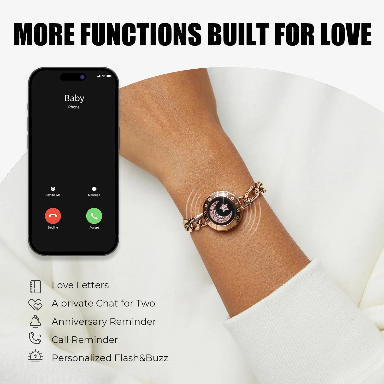 Adjustable light color and vibration intensity allow the bracelet to flash and buzz on your preference. Feel your partner's love and touch on your wrist, always at the ready.