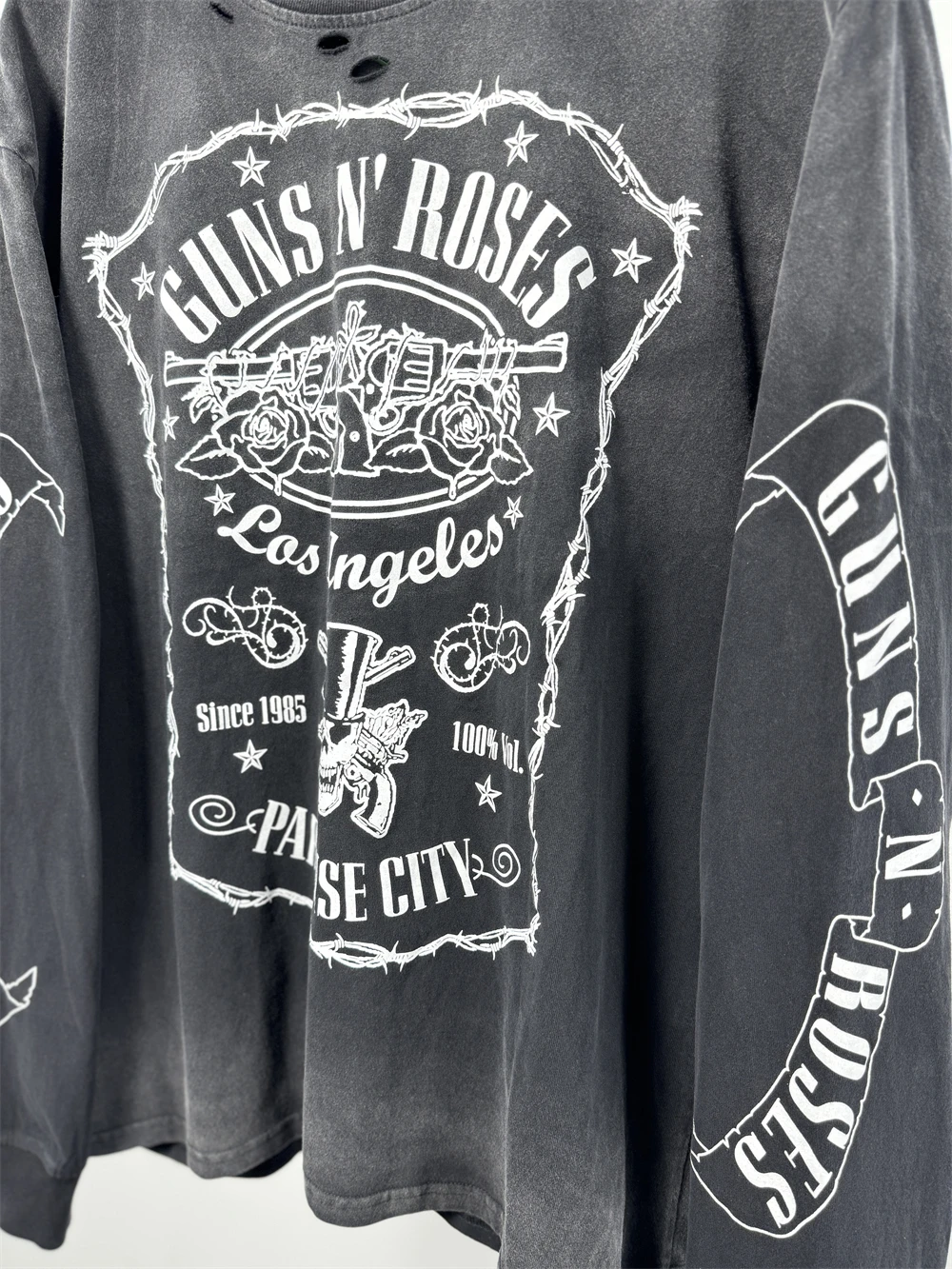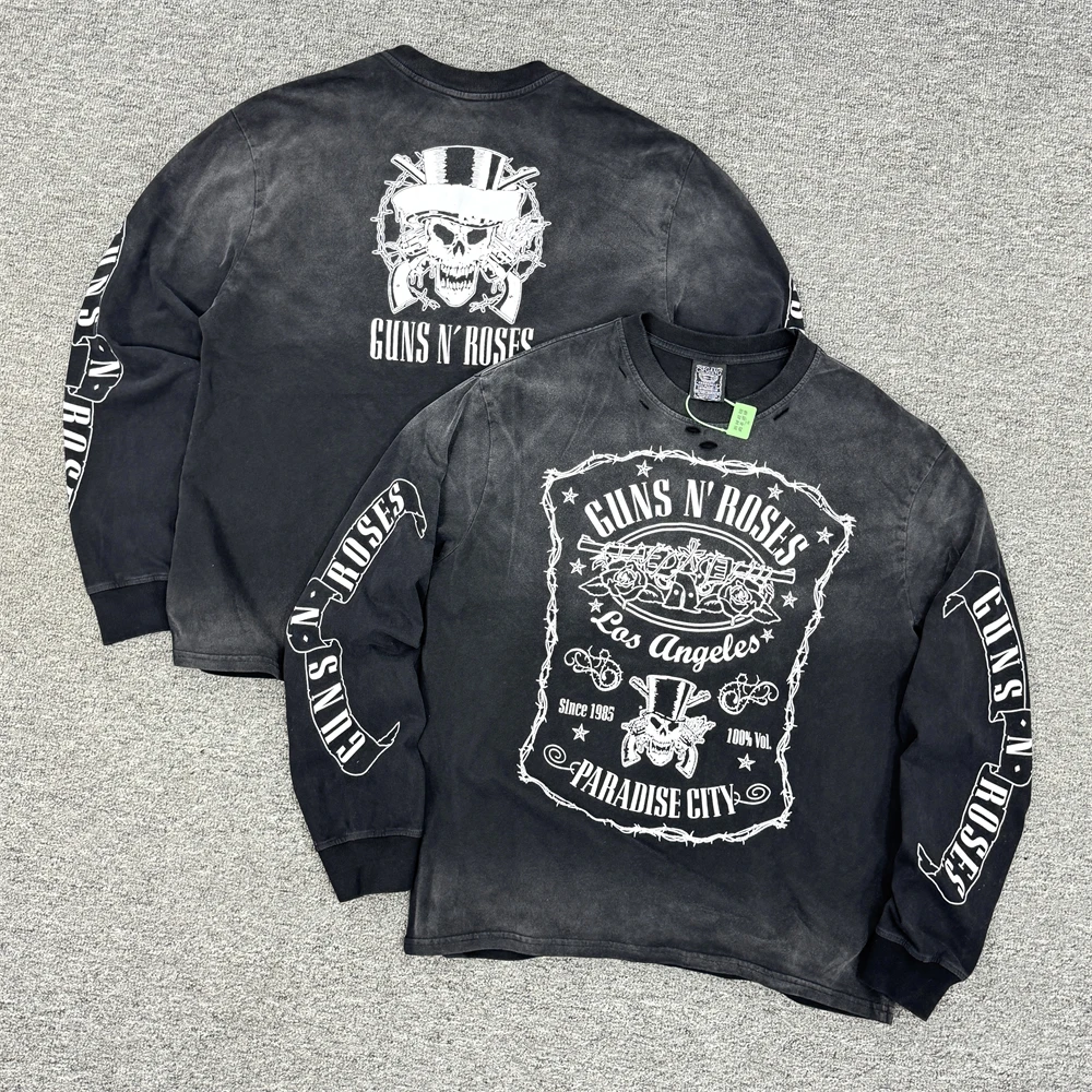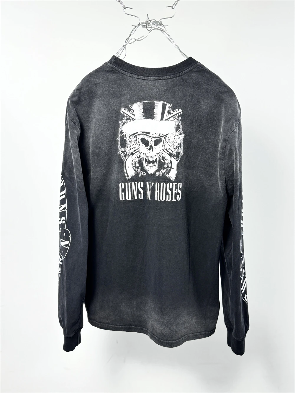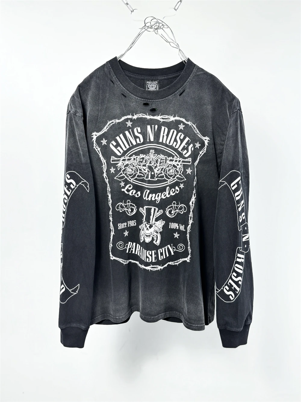 Vintage Hole SAINT Guns N' Roses Las Vegas Limited Washed T Shirt Men Women oversized Black Tee Tops T-Shirts