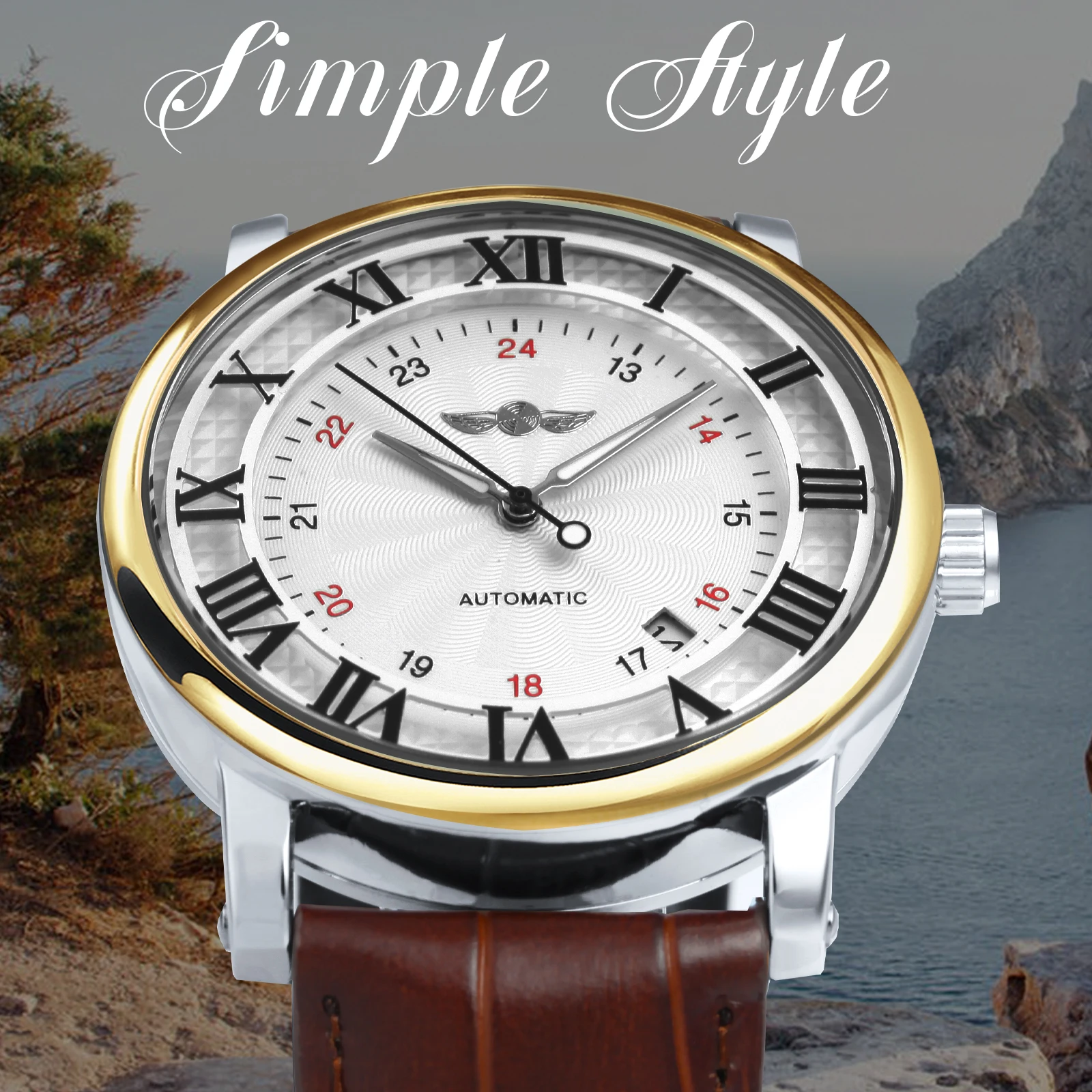WINNER Automatic Watches Men Brand Luxury Simple Mechanical White Dial Leather Strap Calendar Clock Minimalist Wristwatches