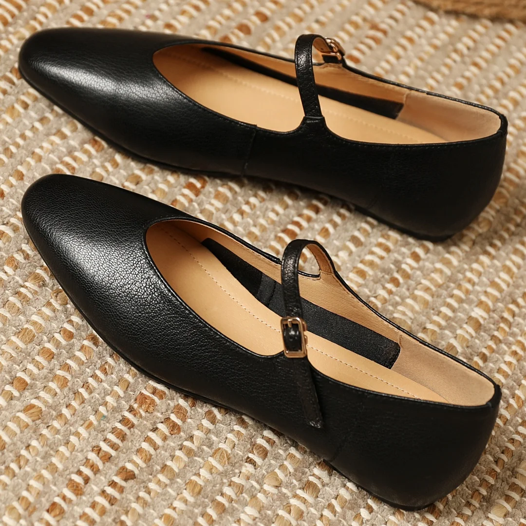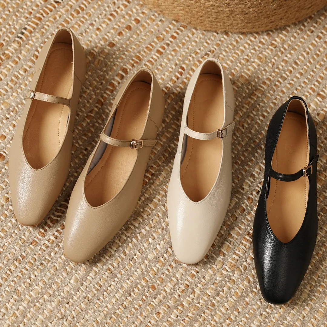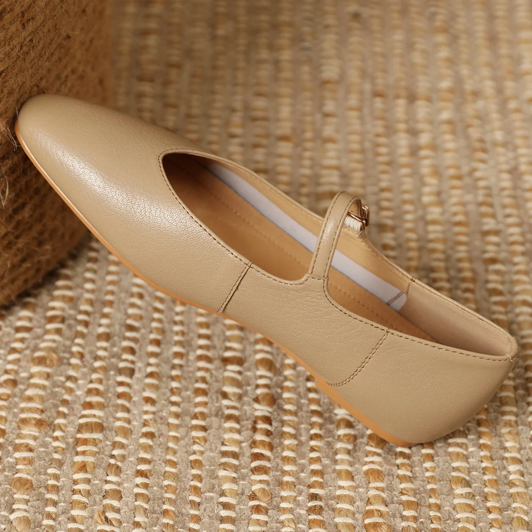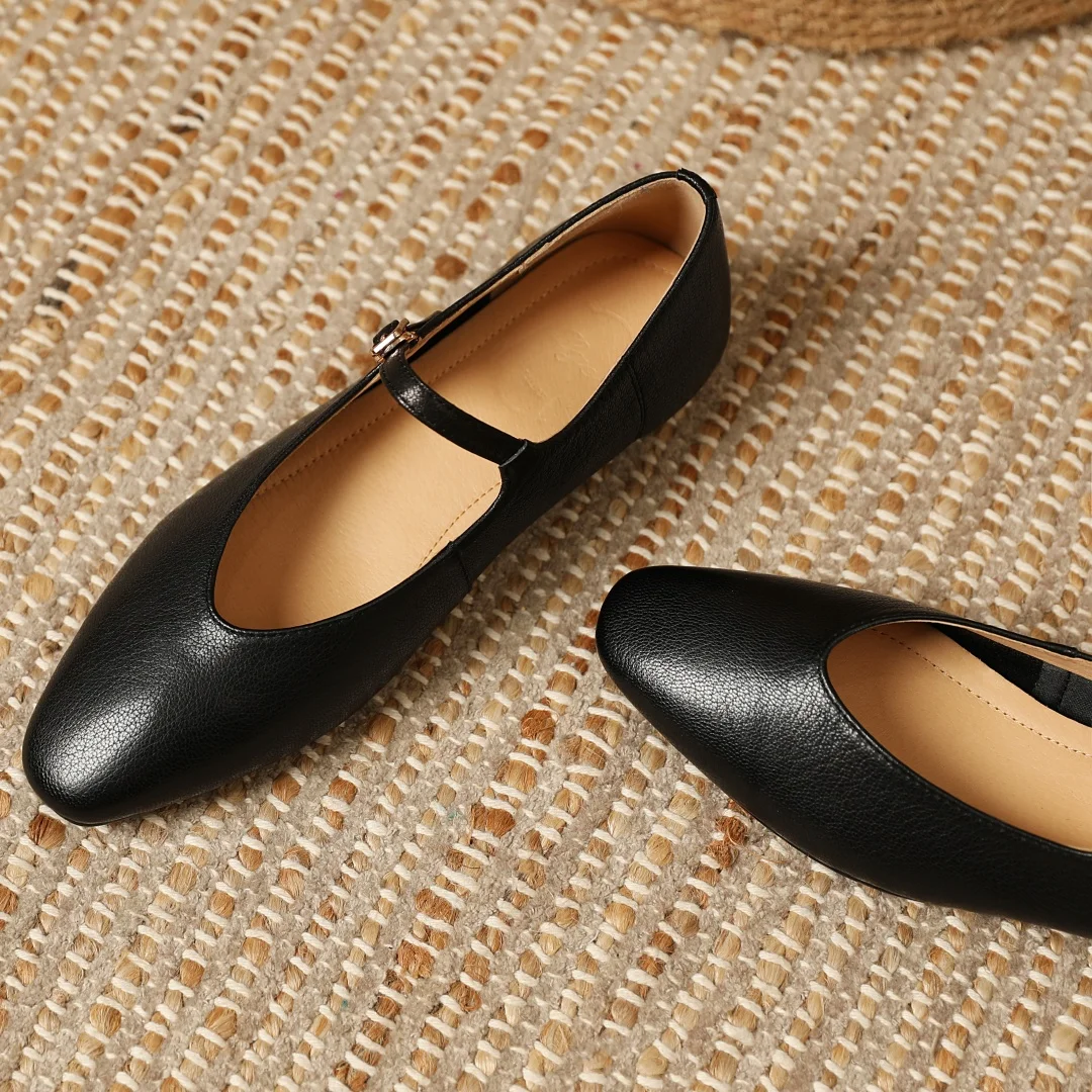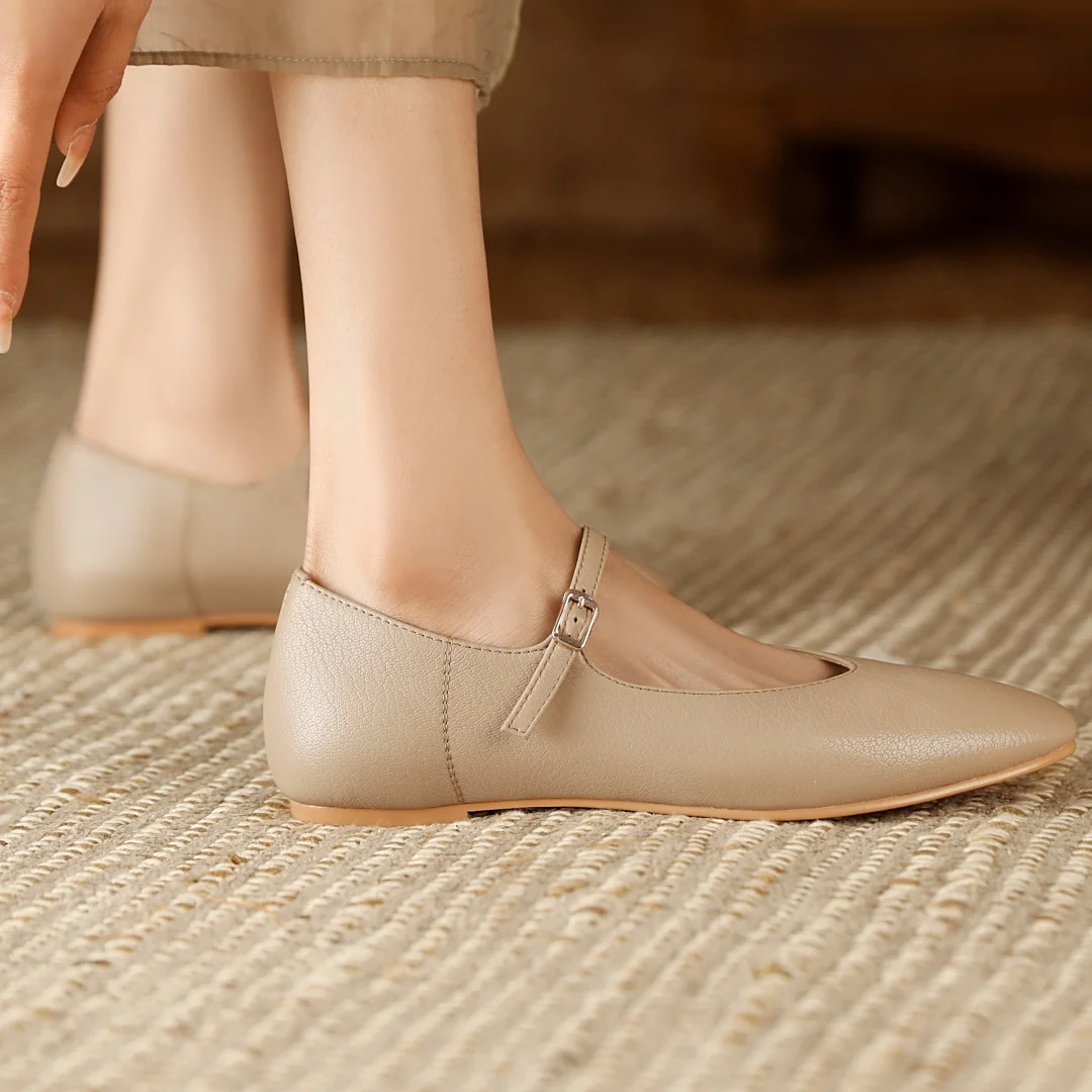 Women's sheepskin round toe slip-on Mary Jane ballet flats soft comfortable casual female ballerinas daily slim shoes for woman