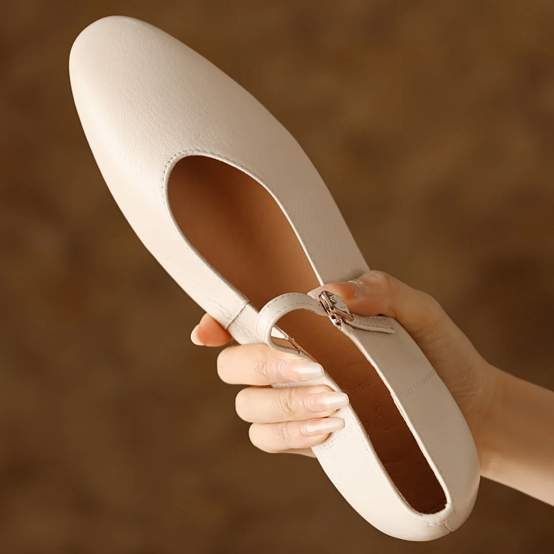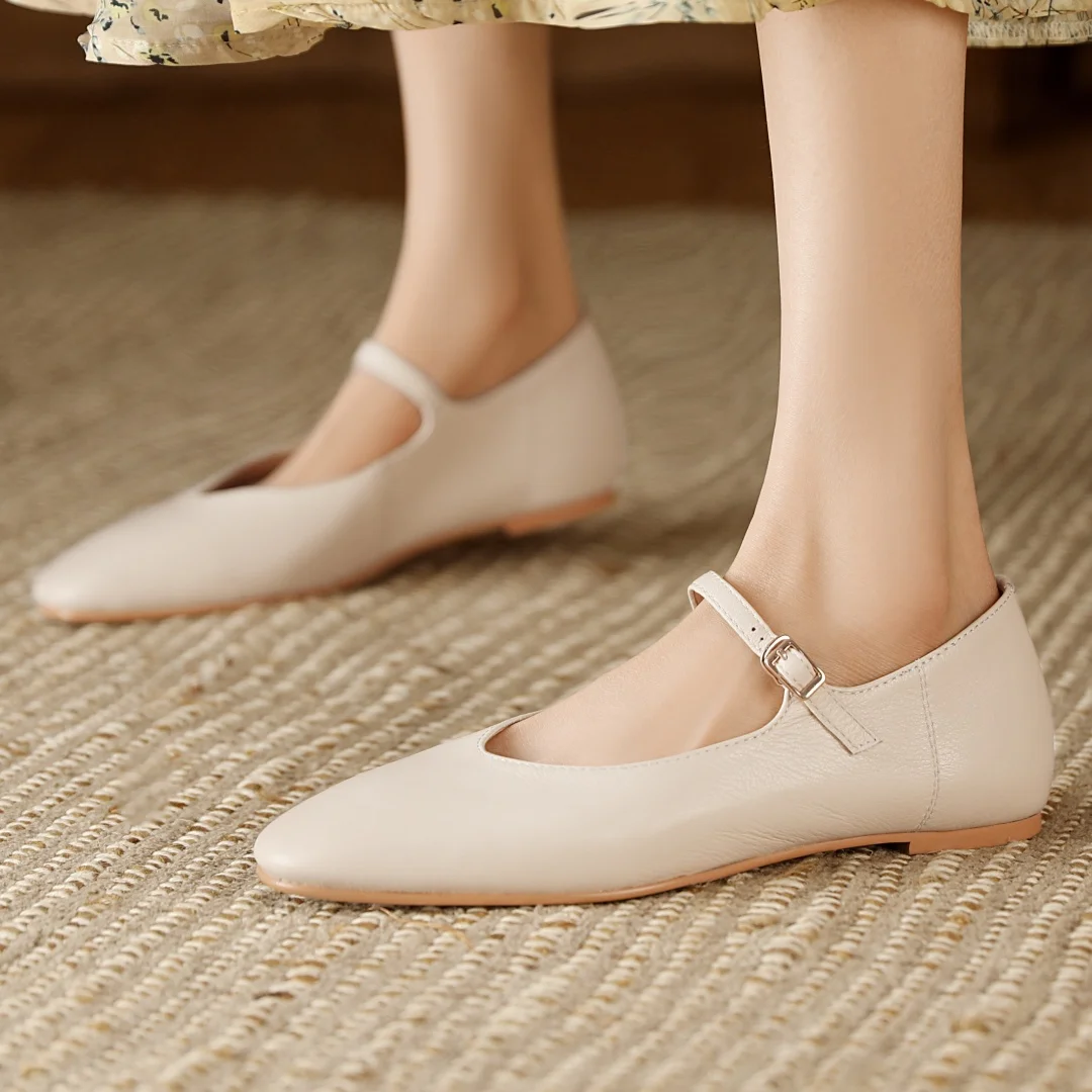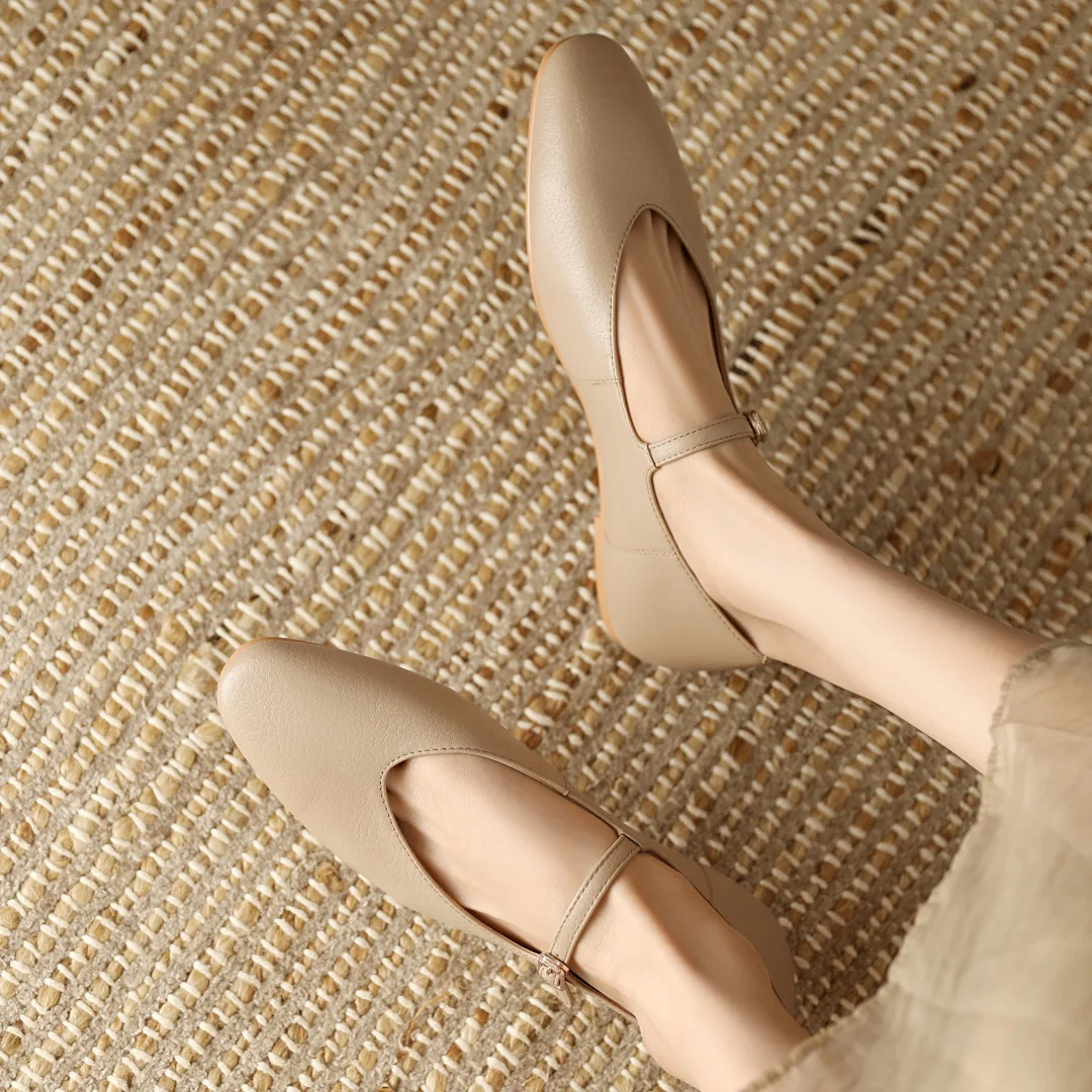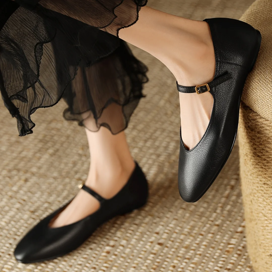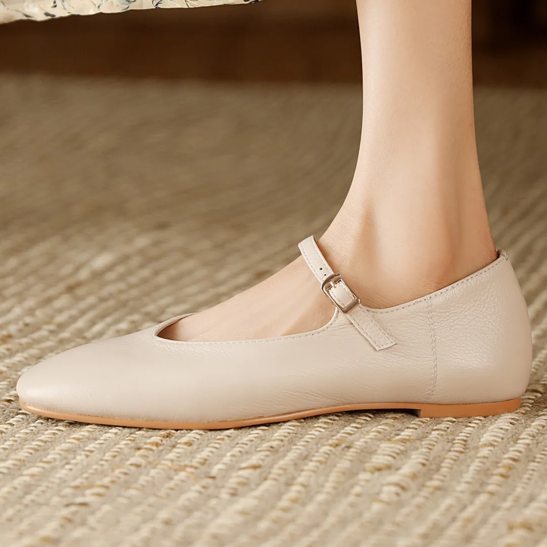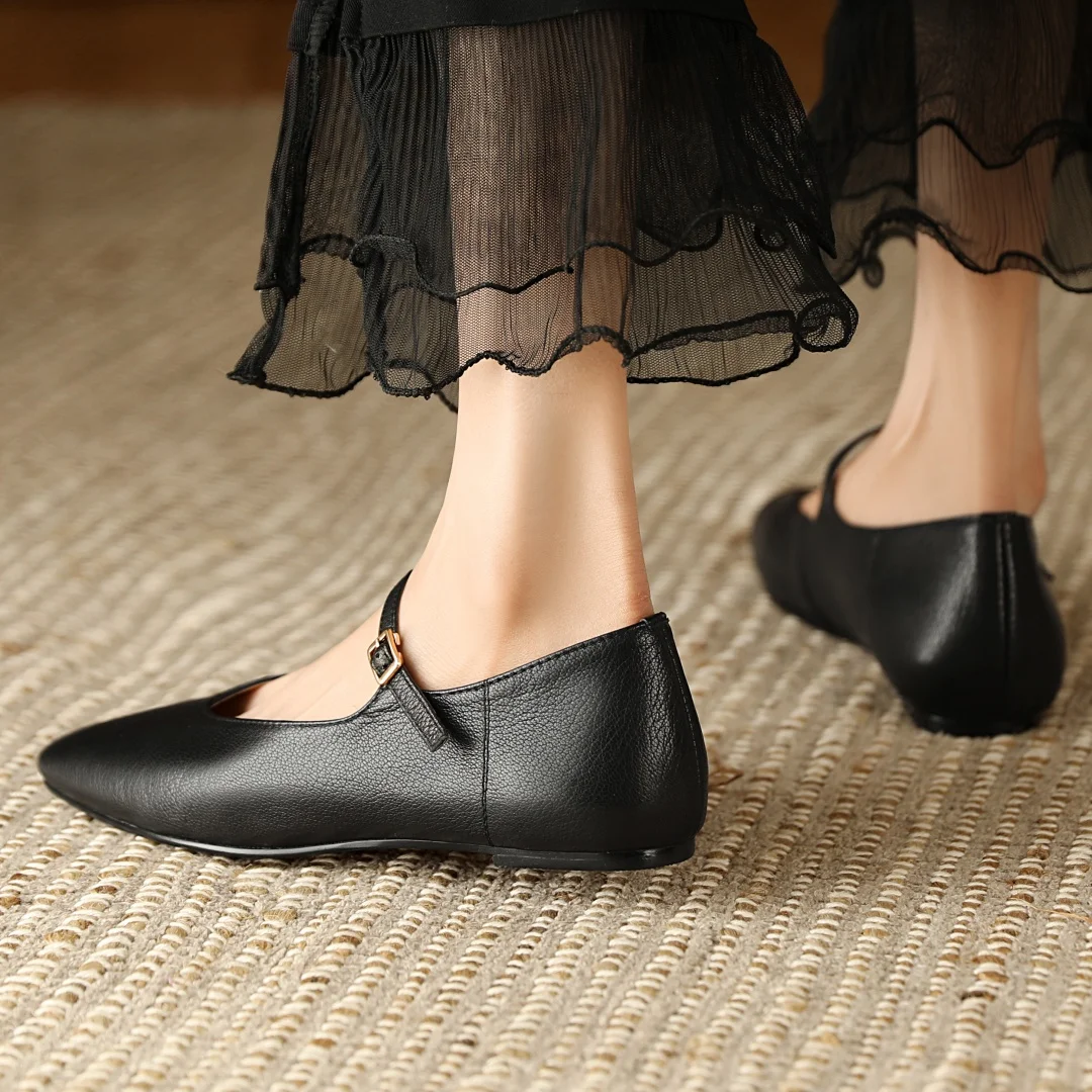 Women's sheepskin round toe slip-on Mary Jane ballet flats soft comfortable casual female ballerinas daily slim shoes for woman