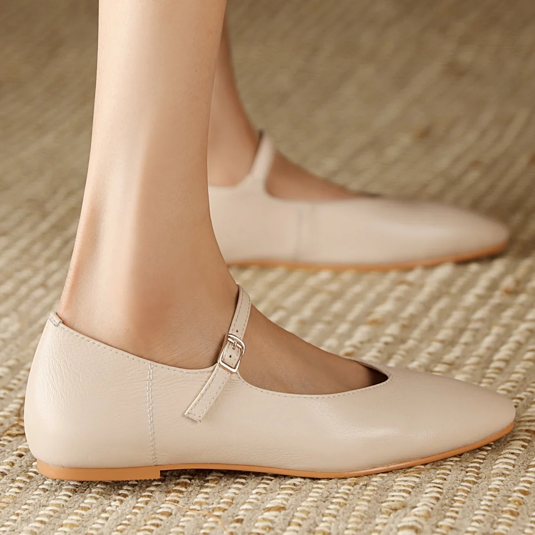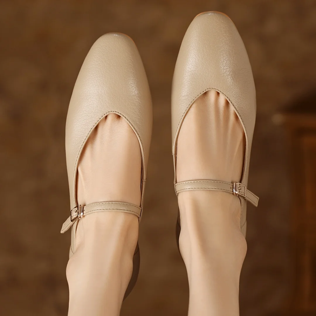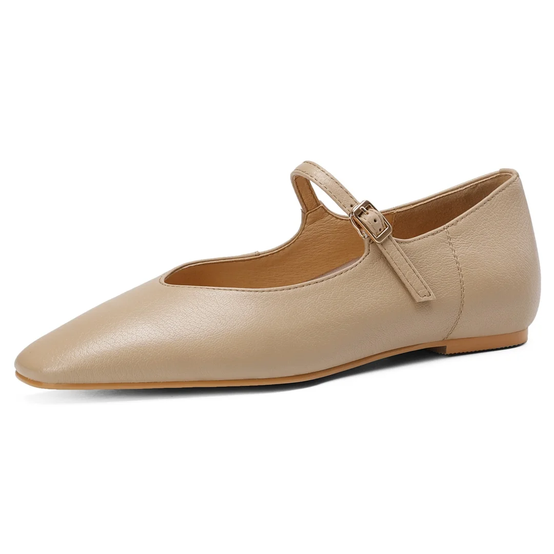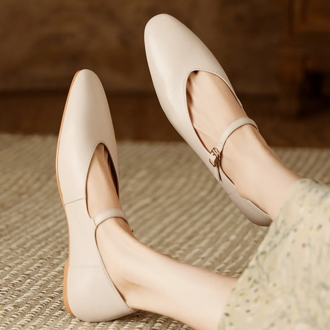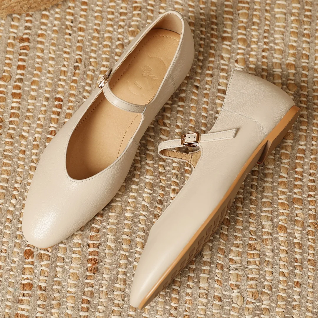Women's sheepskin round toe slip-on Mary Jane ballet flats soft comfortable casual female ballerinas daily slim shoes for woman