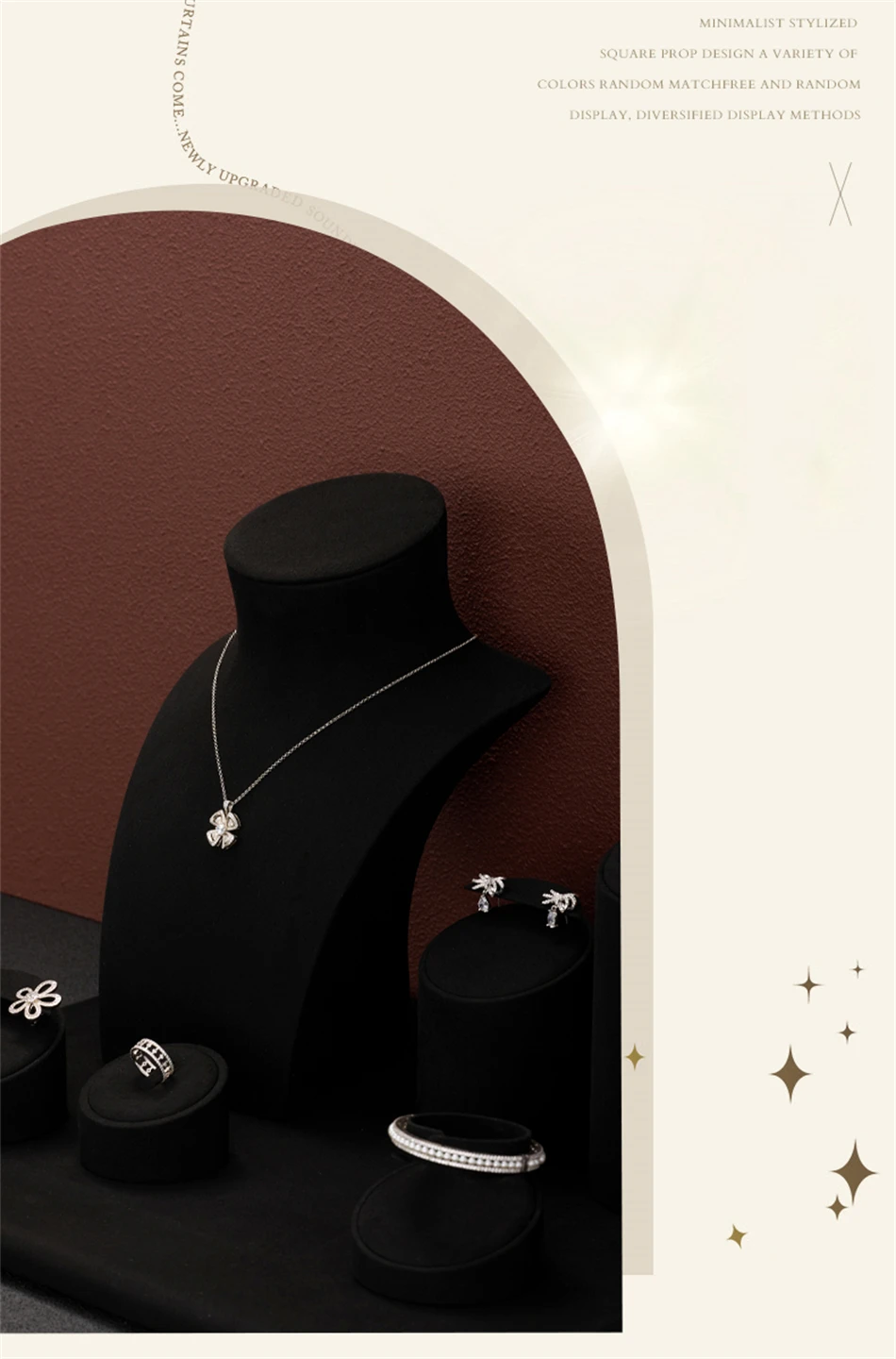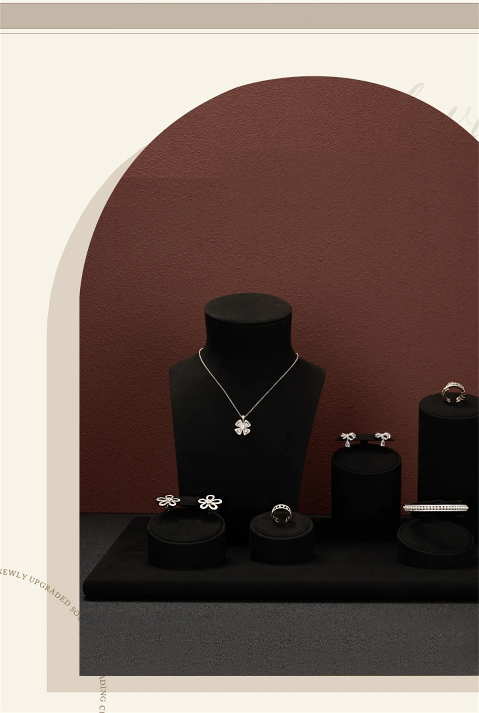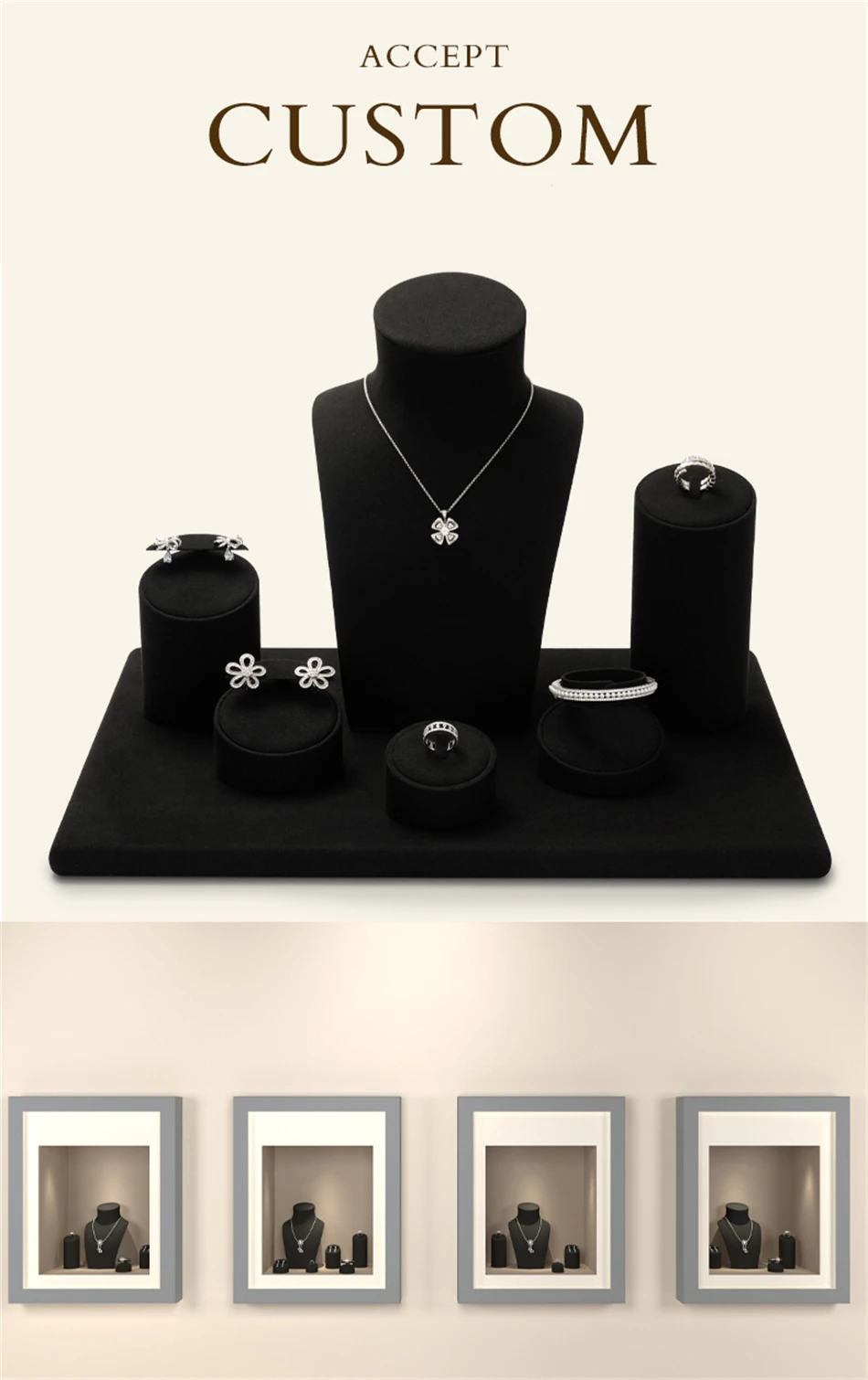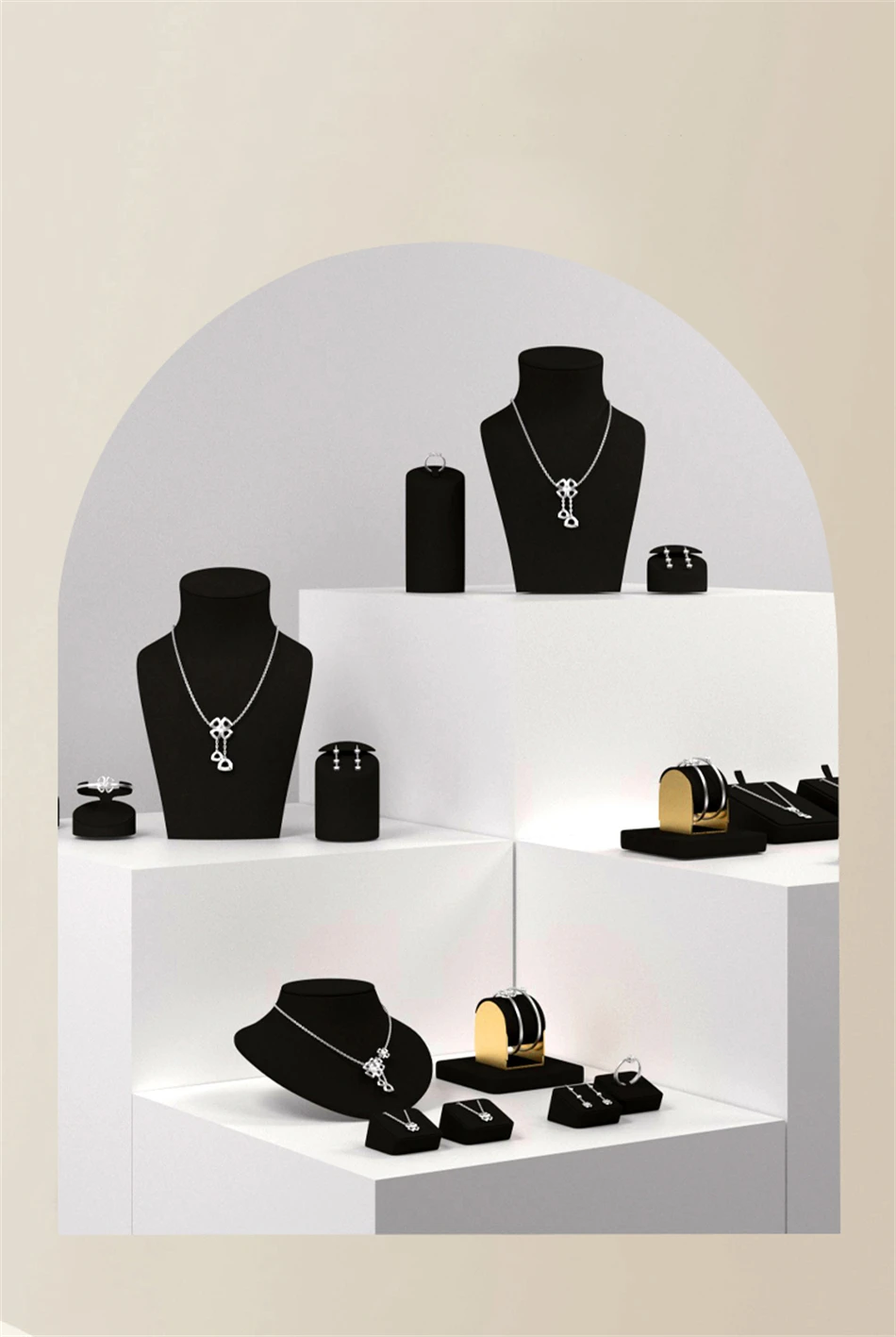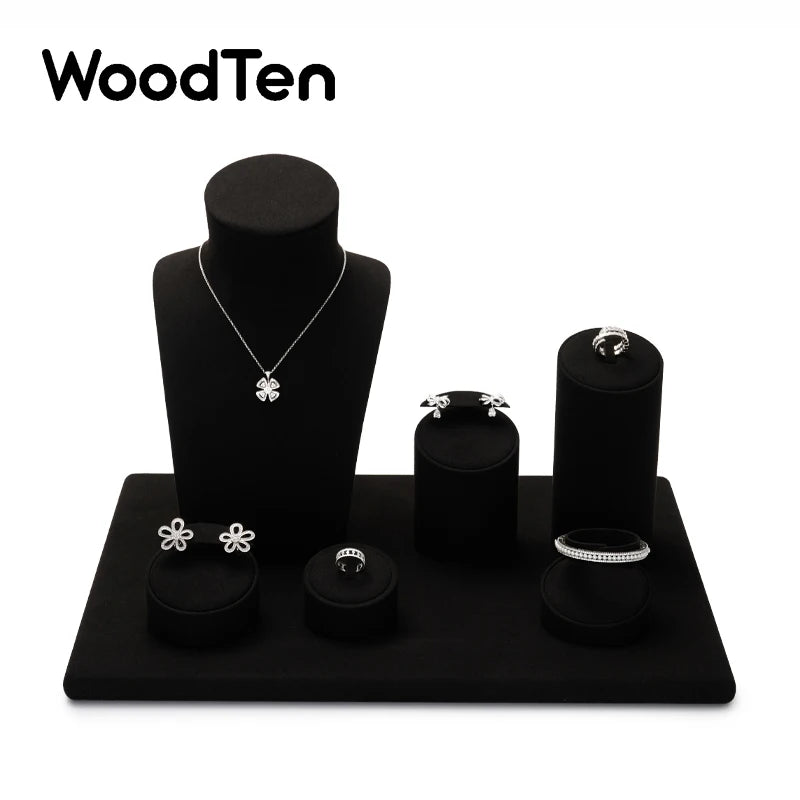 WoodTen Black Microfiber Jewelry Display Props for Shop Counter Popular Rings Earrings Necklaces Portraits Jewelry Display Stand