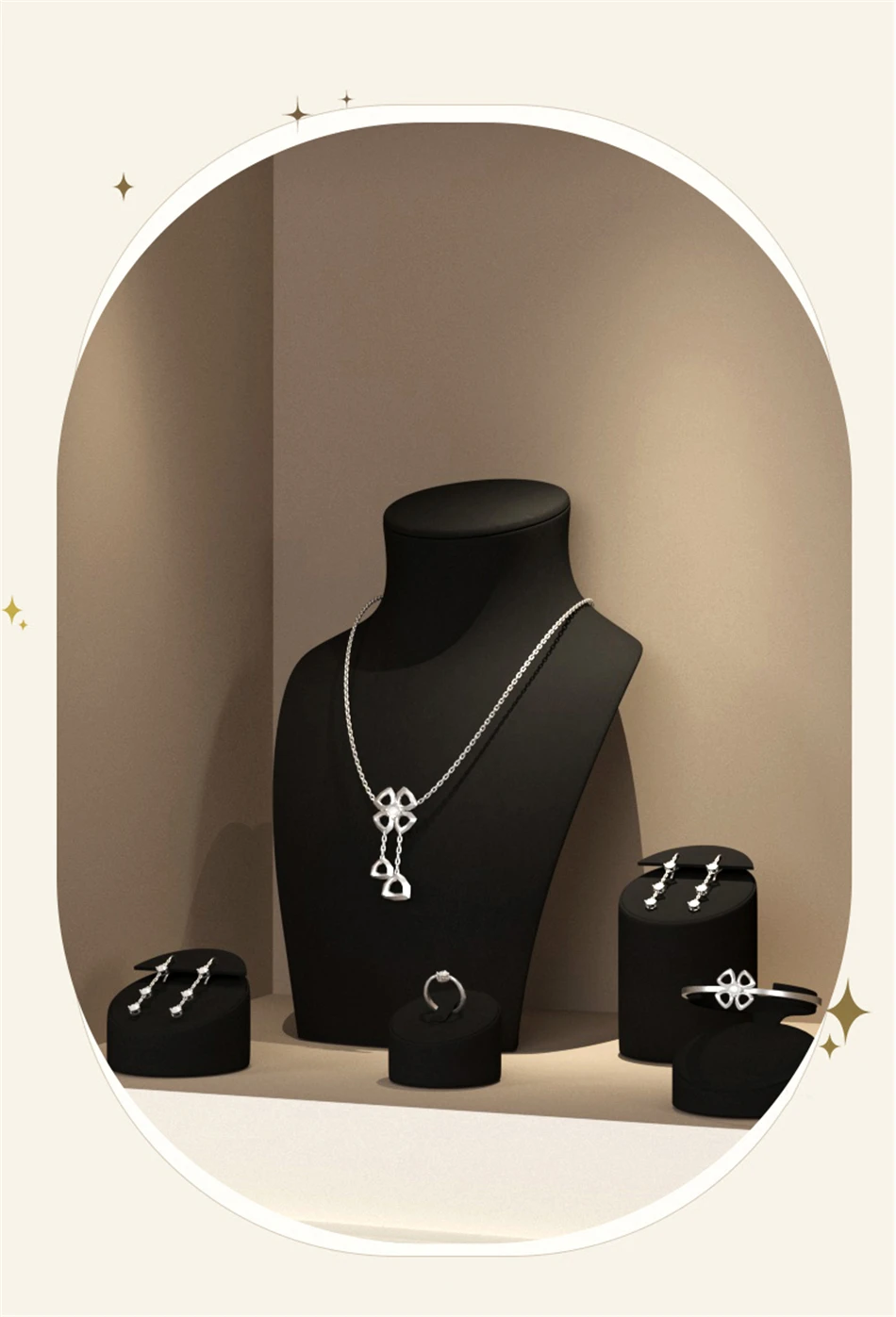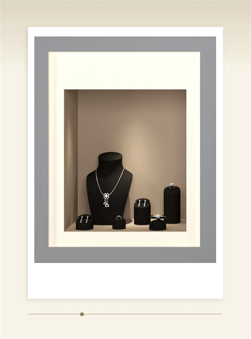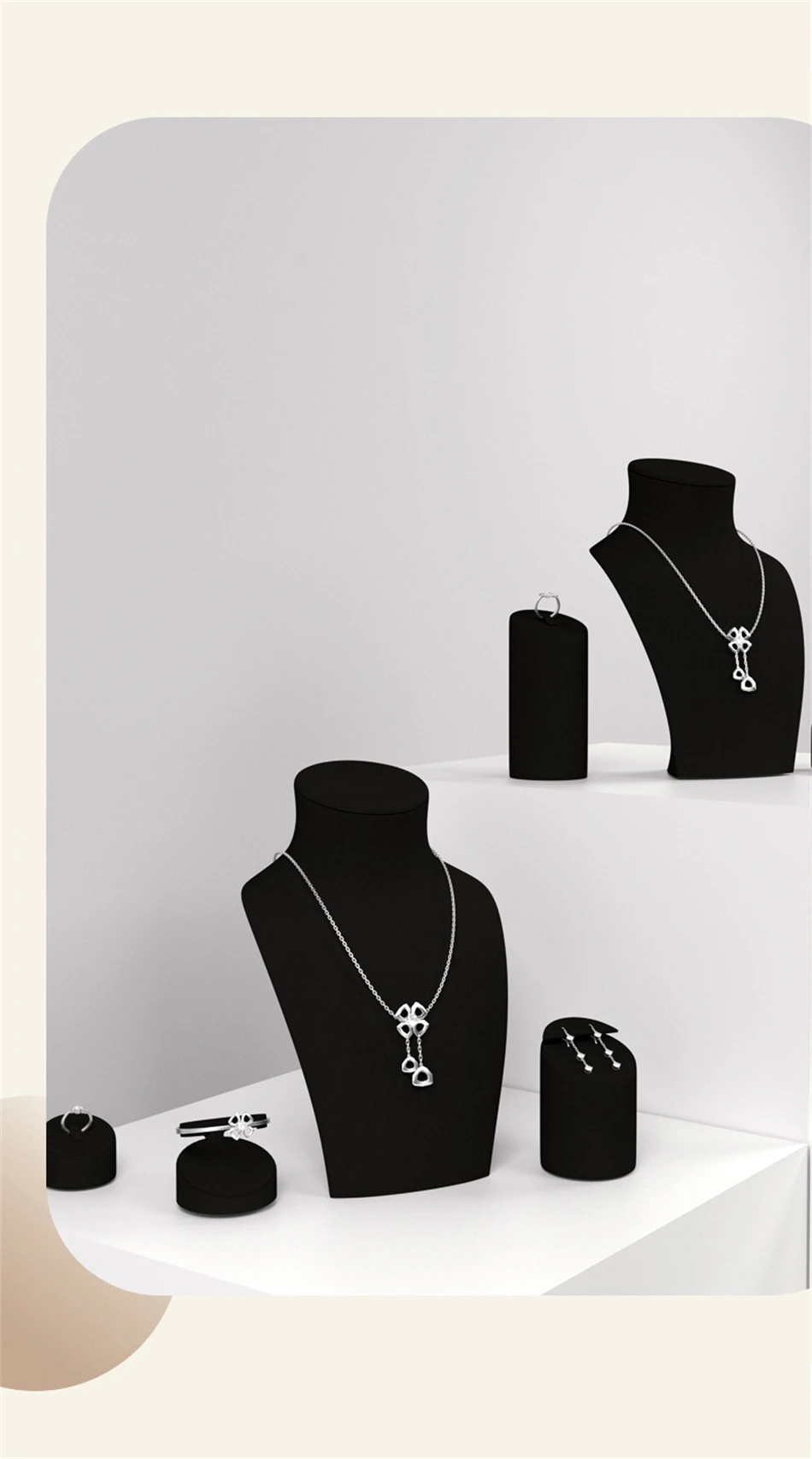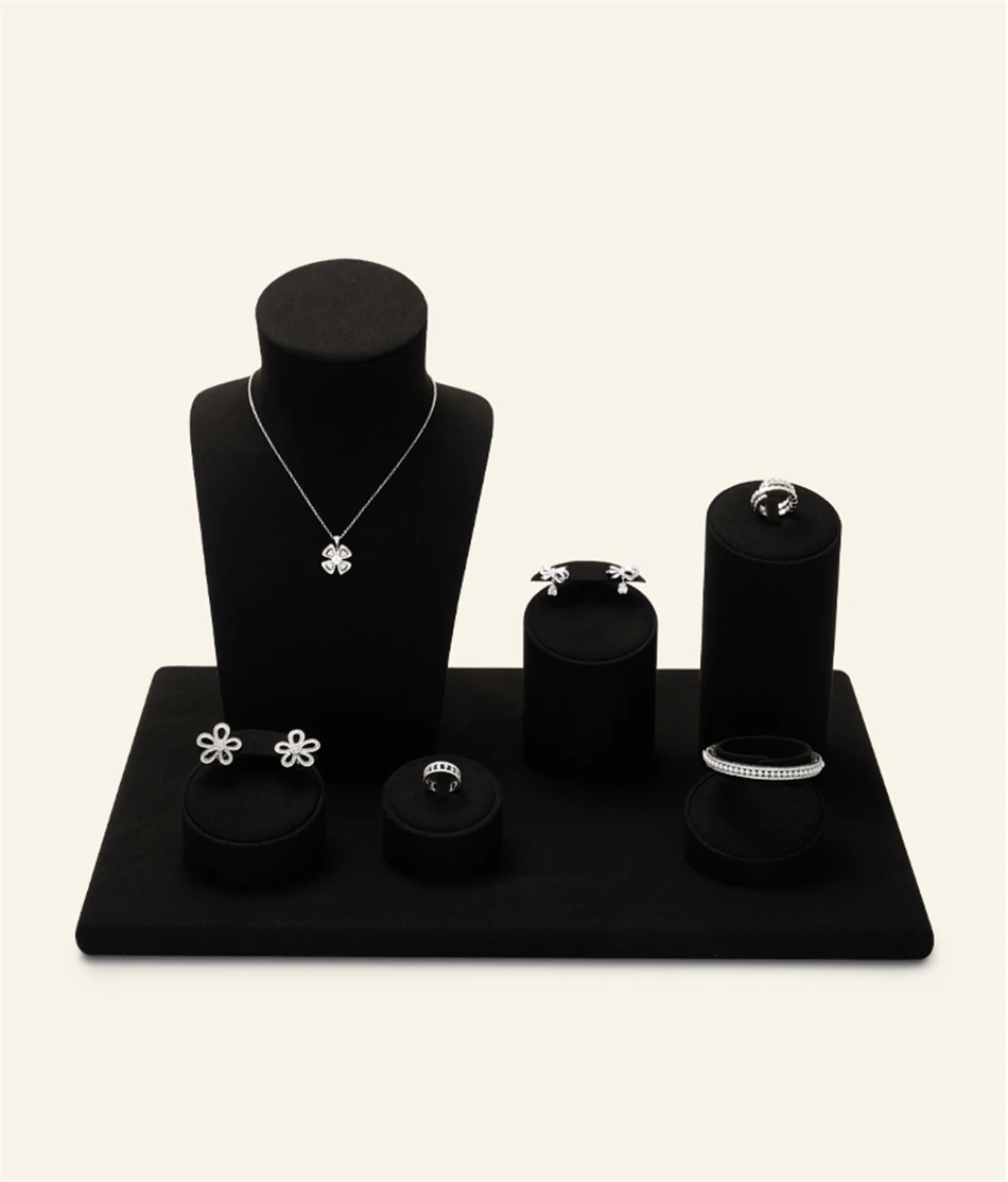 WoodTen Black Microfiber Jewelry Display Props for Shop Counter Popular Rings Earrings Necklaces Portraits Jewelry Display Stand